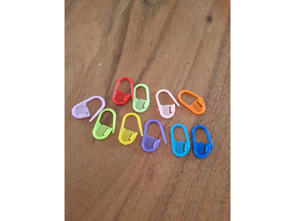 Farebné zapínacie špendlíky sú vynikajúcim pomocník najmä pri háčkovaní.